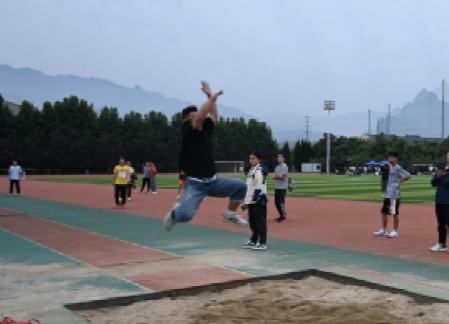 凝神聚气,助跑踏跳。