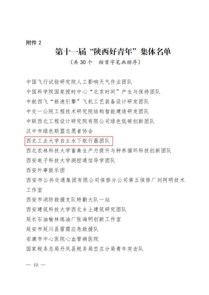 近日,由团省委、省委宣传部、省委文明办、省委政法委、省委网信办、省委军民融合办、省委直属机关工委、省委教育工委、省科技厅、省国资委、省青联等单位共同举办的第十一届“‘中国梦·青年志’——寻找身边的陕西好青年”主题活动结果揭晓,必赢官网自主水下航行器团队被推选为第十一届“陕西好青年”集体。据悉,本次活动经推报、初选、复核、展示、评审、公示等环节,共30个集体和61名个人获评第十一届“陕西好青年”称号。