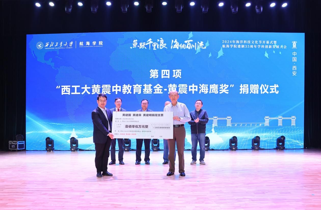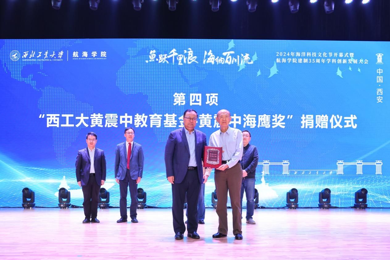开幕式上举行了“必赢国际437官网黄震中教育基金--黄震中海鹰奖”捐赠仪式。宋保维、潘光、学校对外联络办公室主任杨铭接受捐赠。