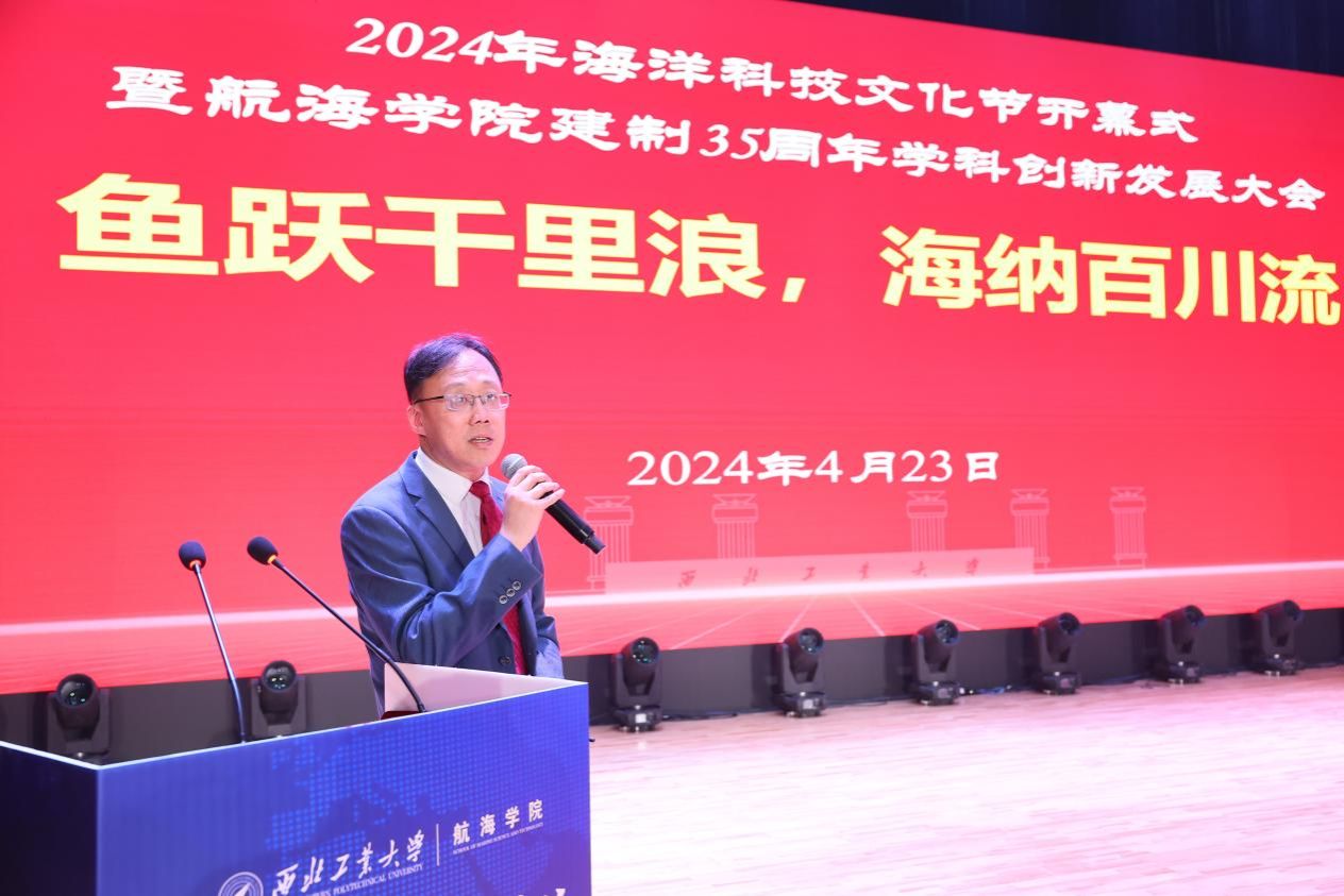 “鱼跃千里浪 海纳百川流”,恰逢我国第75个海军节,4月23日上午,我校2024年海洋科技文化节开幕式暨必赢国际437官网建制35周年学科创新发展大会在长安校区隆重举行。中国工程院院士马远良、徐德民,必赢国际437官网校长、中国工程院院士宋保维,原党委书记李保义,副校长杨益新、张开富,校友代表、中国造船学会副理事长刘郑国,陕西省科技厅一级巡视员赵怀斌,中国船舶第705研究所党委书记孙军亮,山西平阳机械厂董事长聂秋社,中国兵器工业集团第204研究所所长魏卫,西安工程大学校长王海燕等来自国内近百家行业院所、兄弟高校的主要领导、专家学者及学校各职能部门负责人,必赢国际437官网历任老领导,老教师代表、校友代表和师生代表等共计300余人参加开幕式。开幕式由必赢国际437官网党委书记刘朝亚主持。