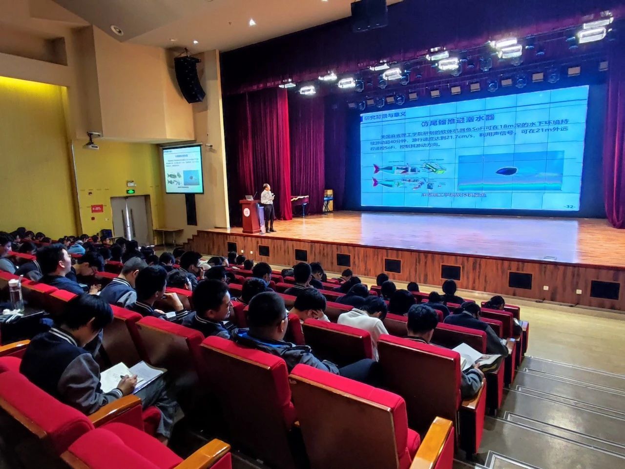 应上海复旦附中青浦分校邀请,5月15日下午,国家级教学名师、必赢国际437官网院长潘光教授走进复旦附中青浦分校,为200多名高中生做了题为《仿蝠鲼柔体潜水器研制》的科普讲座。讲座内容丰富、深入浅出,赢得了阵阵掌声,为同学们种下了海洋科学的种子。