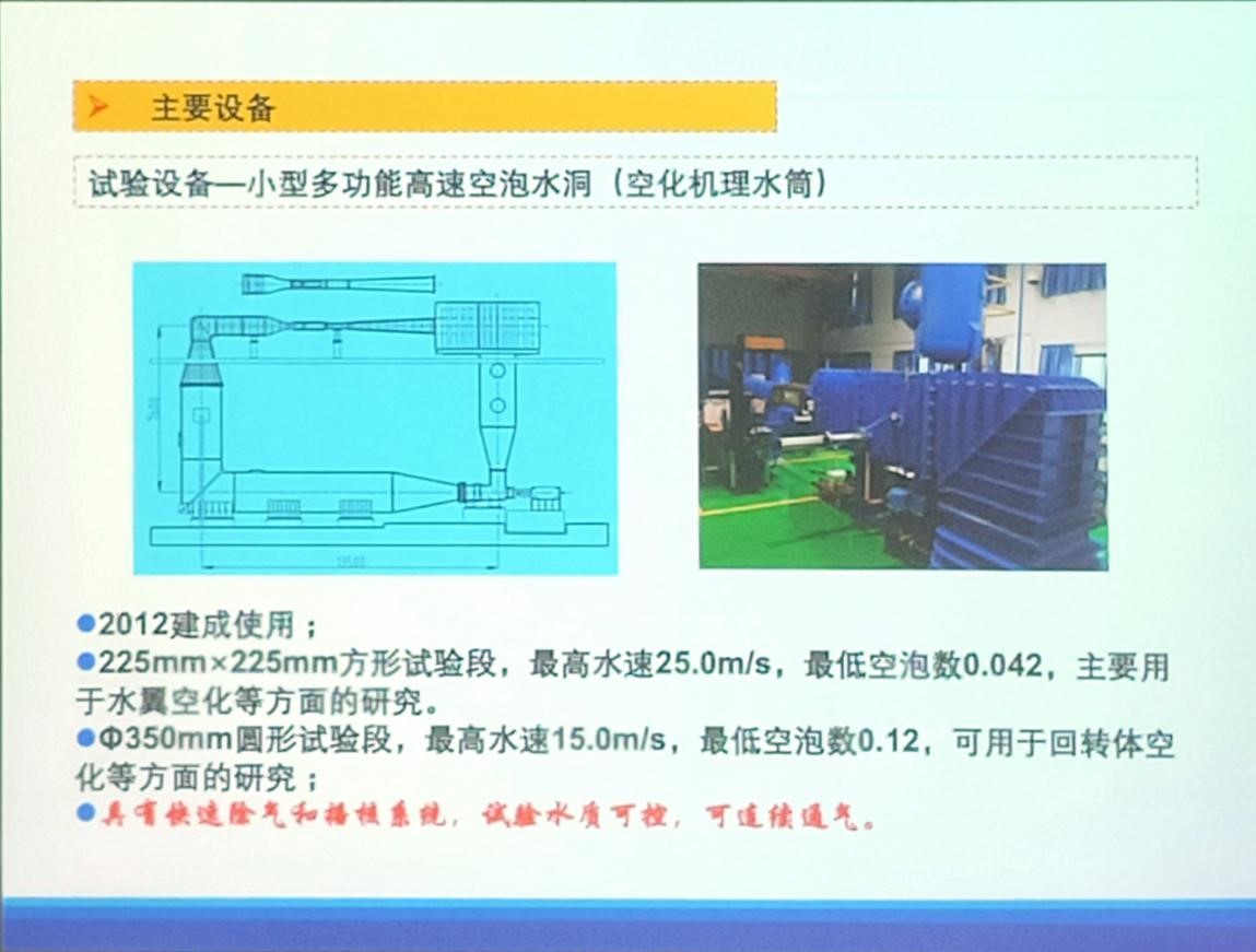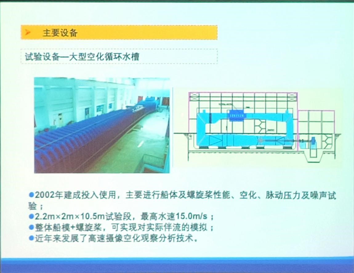 彭晓星研究员首先讲述了水动力学空化的概念和空化的研究简史,随后引出了空化机理面临的问题,最后向老师和学生介绍了CSSRC作为国家船舶基础水动力学研究单位的主要试验设备:大型空化水筒、大型空化循环水槽、减压拖曳水池、小型多功能高速空泡水洞以及测试技术。