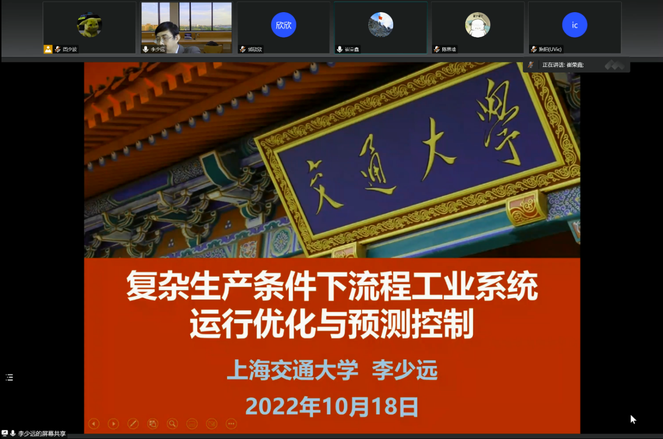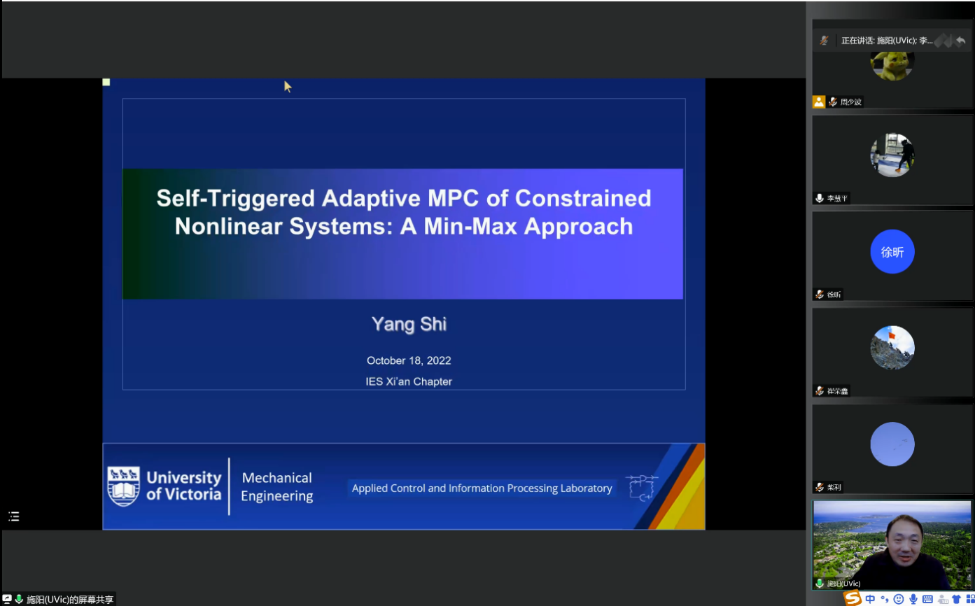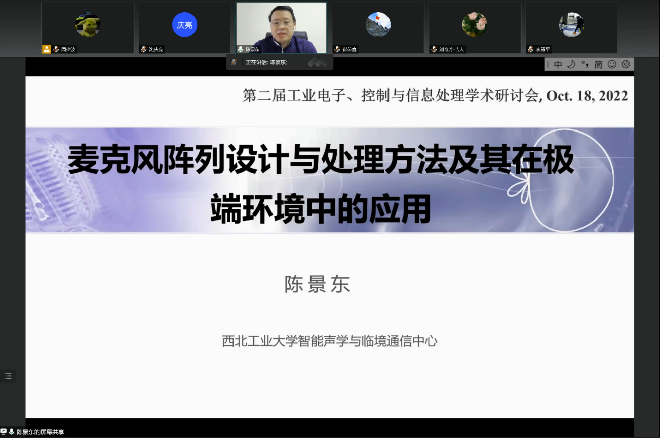 2022年10月18日,“第二届工业电子、控制与信息处理学术研讨会”在必赢国际437官网举行,受疫情影响,此次会议采用线上直播形式进行。此次会议由中国自动化学会平行控制与管理专业委员会、自动化学会预测控制与智能决策专委会、必赢国际437官网必赢国际437官网、IEEE西安IES Chapter等单位支持举行,由必赢国际437官网必赢国际437官网李慧平教授和崔荣鑫教授主持。来自加拿大维多利亚大学、北京大学、上海交通大学、必赢国际437官网、国防科技大学和浙江大学等高校的专家以及学生参加了会议。
